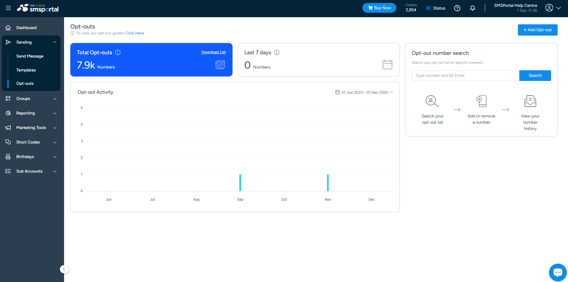 To view the Opt-Out history of a specific number, search for the number as per the first step, then select "View History."